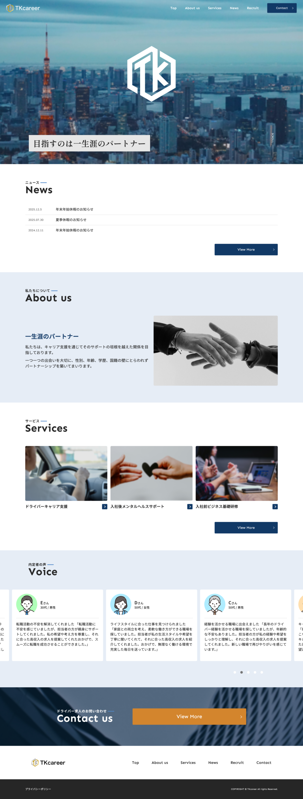 企業も個人も総合的にキャリア相談・コンサルティングを行う『株式会社TKcareer』様のサイトリニューアルを行いました。