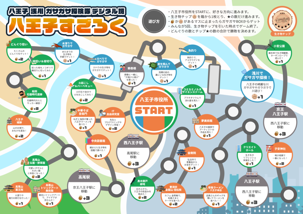 八王子の街を舞台とした八王子すごろくを制作しました。