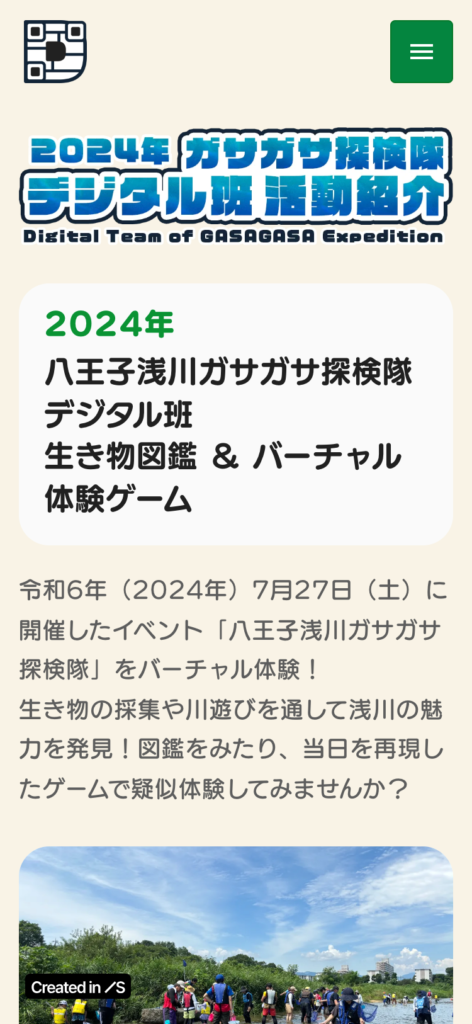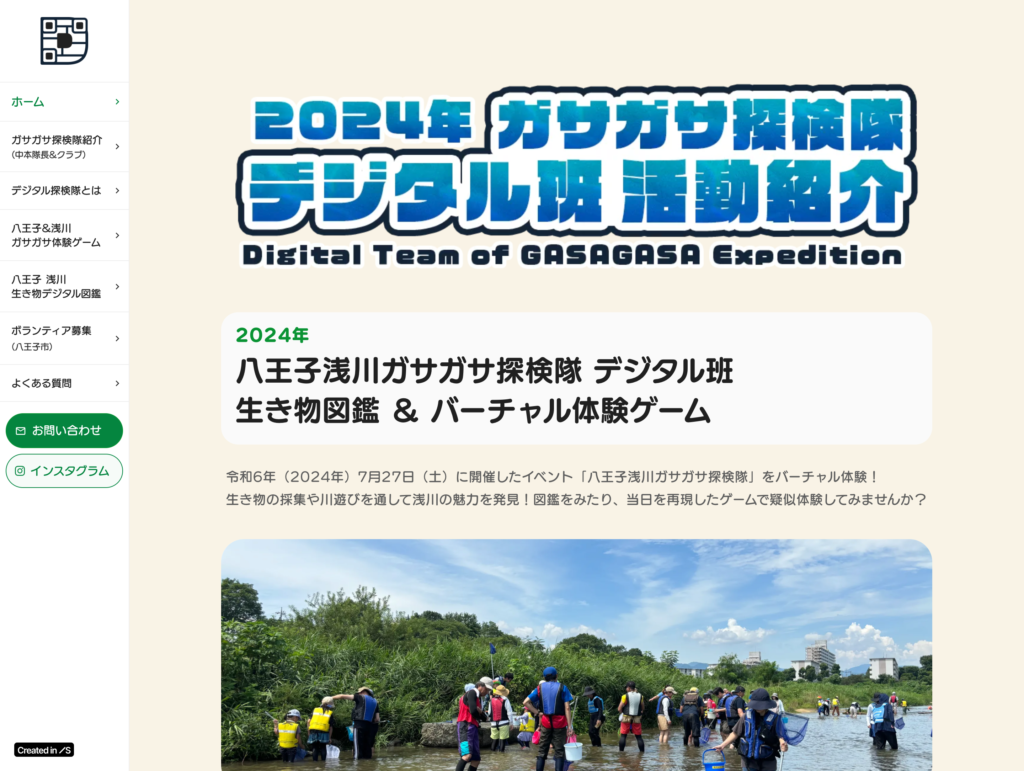 バーチャルコミュニケーションツールのGatherでの会議、オンラインデザインツールでのイラスト制作、Scratchを利用したゲーム開発等のデジタルクリエイションと、八王子市市役所 浅川でのアウトドア体験と活動時に採取した自然素材を活用した地域紹介すごろくゲームの制作という、Digitalとフィールドワークを組み合わせたプロジェクトを行いました。